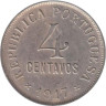 0 отзывов к товару Португалия. 4 сентаво 1917 год. Свобода.